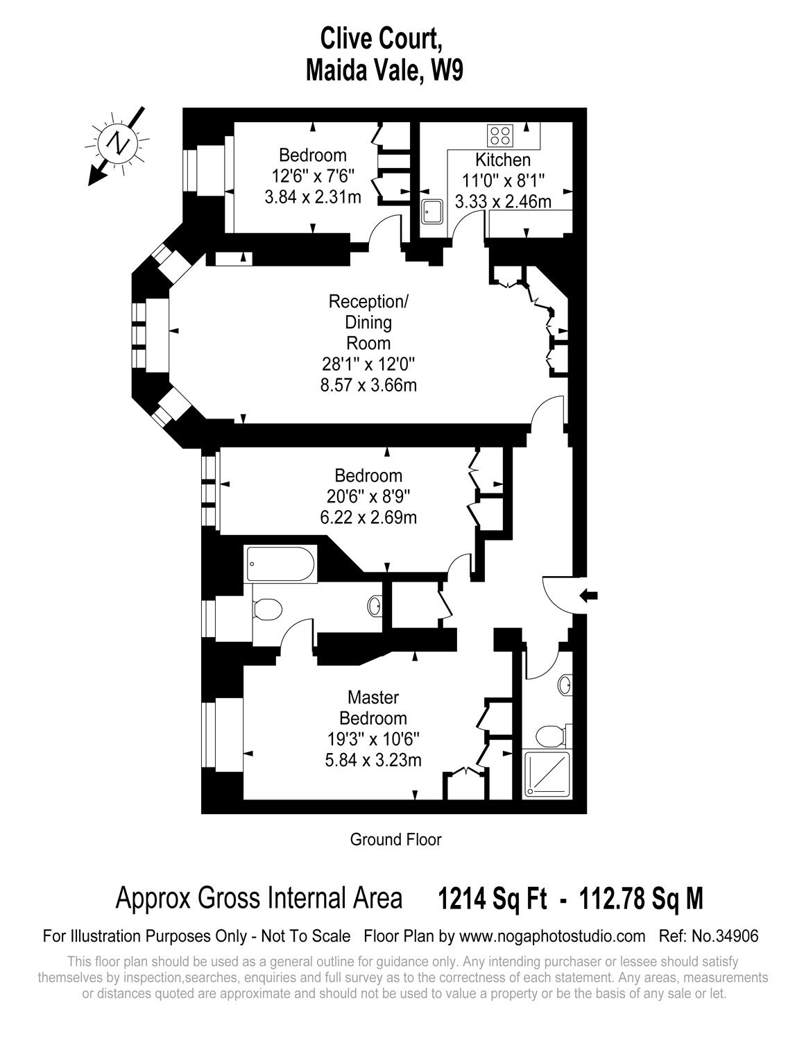 Set on the ground floor of this sought after mansion block (with level access) is this large, well proportioned, three bedroom, two bathroom, 1214 sq ft/ 112 sq m apartment with porterage. Comprising a bright reception room, fully fitted kitchen, principal bedroom with en-suite bathroom, two further bedrooms and a shower room. The apartment offers hard wood flooring, a modern gloss kitchen with high end appliances and still retaining its period character throughout. The apartment is superbly located just moments from the array of shops and cafe's on Clifton Gardens and Warwick Avenue Underground Station (Bakerloo Line). Disclaimer: The photos of the property are real, however all furniture and furnishings items have been computer generated (at actual scale) for illustration purposes only.